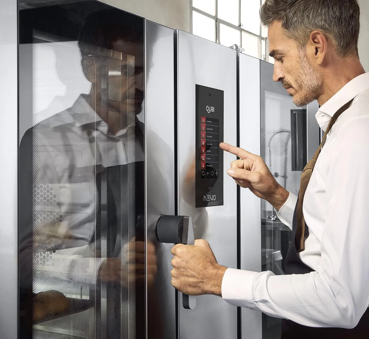 Der Qubi-Ofen gewährleistet ausgezeichnete Garpräzision dank der Double Steam Balance-Technologie, die direkten und indirekten Dampf kombiniert und für einzigartige Temperaturstabilität sorgt.